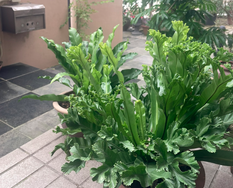 「南国山野草園」さんは、霧島市の天降川沿いにあります。珍しい大柄なシダ科のりゅうびんたいや苔玉があります。こんなセンスのいいお店があったなんて! 感動しました。