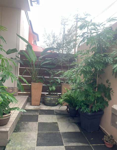 私が植物を育てるのがとても好きで、オリーブ、ミモザ、エバーフレッシュなど、気に入ったものを買い求めては、庭や玄関に置いて楽しんでいます。