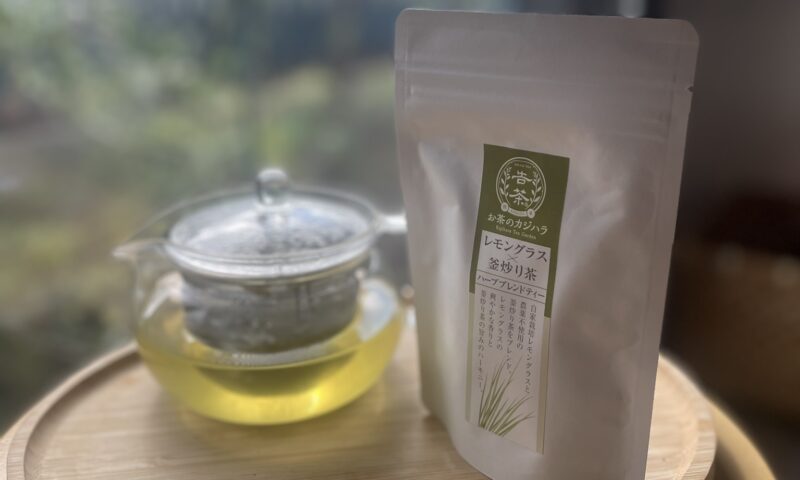 私のこだわりは、「お茶のカジハラ」さん(熊本県芦北町)が製造されている「レモングラスと釜炒り茶のハーブティー」です。